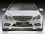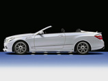 Mercedes-Benz E-Class Cabrio Следующее творение специалистов из Ротвайля – Mercedes-Benz E-Class в кузове кабриолет. По уже сложившейся в фирме традиции новый комплект аэродинамических элементов получил собственное имя – Caractere RS. Но не только внешним видом уникален доработанный автомобиль, есть у него и другие интересные особенности. Часто бывает, что новые навесные элементы нарушают гармонию образа “подопытного” экземпляра. В случае с кабриолетом Е-Class от Piecha Design этого не произошло. Дизайнерам удалось грамотно подчеркнуть изящные линии кузова в заводском М-“обвесе”, сделав внешность автомобиля еще более привлекательной. Для этого под передний бампер удачно приклеили слегка выпирающую “губу” с вентиляционными отверстиями, а к боковым порогам приладили диодную подсветку, освещающую пространство возле дверей. Сзади обращают на себя внимание маленькое антикрыло на крышке багажника, состоящее из трех частей, и настоящий гоночный диффузор, очень похожий на диффузоры автомобилей Ferrari. Завершают комплект кузовных преобразований четыре овальных выхлопных патрубка, как у моделей AMG. Стильно смотрятся и новые колесные диски DP2 Phantom диаметром 20 дюймов с низкопрофильными шинами размерностью 235/35 спереди и 275/30 сзади. А вместо вмешательства в силовой агрегат предлагается более простое решение – новый электронный модуль, сокращающий время реакции на нажатие педали “газа”. И, конечно, в Piecha Design не могли пройти мимо системы складывания крыши: теперь ею можно пользоваться до 50 км/ч (в “базе” – 40 км/ч), и для этого достаточно коснуться клавиши открывания/закрывания, вместо того чтобы постоянно держать ее нажатой.