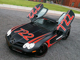 Mercedes-Benz SLR Компания Edo Competition в немецком Алене известна благодаря тюнингу моделей Aston Martin, Ferrari, Bentley, Lamborghini, Maserati, Koenigsegg. Впрочем, не забывают в ателье и о родных марках. В свое время из ворот фирмы выезжали сверхмощные модели Audi, Volkswagen, Porsche и Mercedes-Benz. На сей раз мастера из Алена взялись усовершенствовать суперкар SLR, который в недавнем прошлом был снят с производства, но еще при жизни успел стать легендой. После вмешательства Edo Competition полное название автомобиля звучит как Mercedes-Benz SLR 722 Black Arrow (“Черная стрела”). Цифра “722” свидетельствует о количестве лошадиных сил, разместившихся под длиннющим капотом. Заводской автомобиль, производившийся в английском Уокинге, был оснащен компрессорным V8 объемом 5,5 л, развивавшим 626 л.с. и 780 Нм. В Edo Competition поколдовали над программой управления двигателем и системой выпуска и сменили стандартный воздушный фильтр на более производительный. Эти скромные меры привели к повышению отдачи до 722 л.с., а крутящий момент увеличился до 890 Нм. Соответственно улучшилась и динамика суперкара. Время разгона до “сотни” сократилось с 3,8 до 3,4 с, а “максималка” возросла с 334 до 345 км/ч. Что касается внешнего вида, то автомобиль получил новые 21-дюймовые колесные диски, специально разработанные для SLR, и матовый черно-красный окрас с цифрой “722” на капоте и бортах. Салон отделали “алькантарой” и карбоновыми вставками и установили новый развлекательно-информационный центр с навигацией и возможностью подключения Bluetooth и iPod.